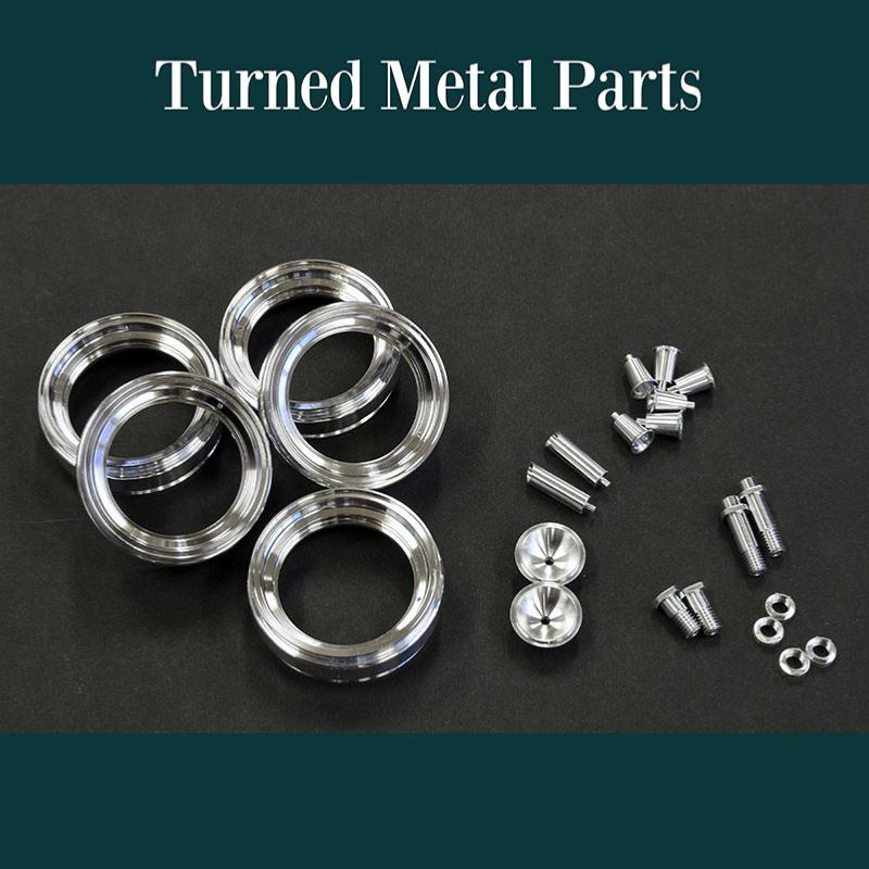 • Matériaux : résine, pièces métalliques, visserie, pneus caoutchouc, photodécoupe, rivets, fils et durites