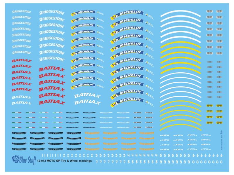 DECAL 1/12 - MOTO GP TIRES & WHEELS MARKINGS - BLUE STUFF - BS12-013